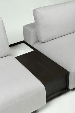 Integrating storage and side table functions into the sofa system enhances its overall utility.