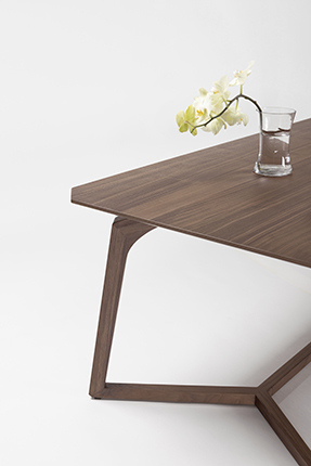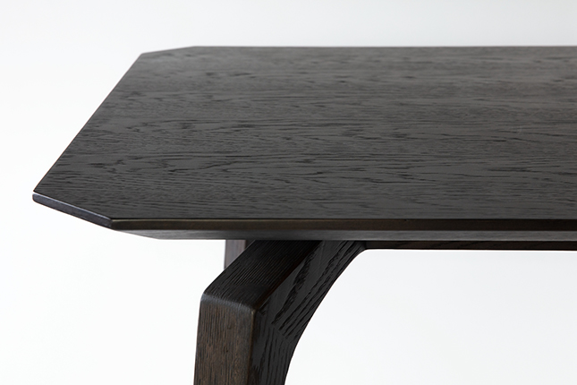 The desktop and corners feature precisely chamfered edges, lending a visually lightweight impression to the substantial wood surface.