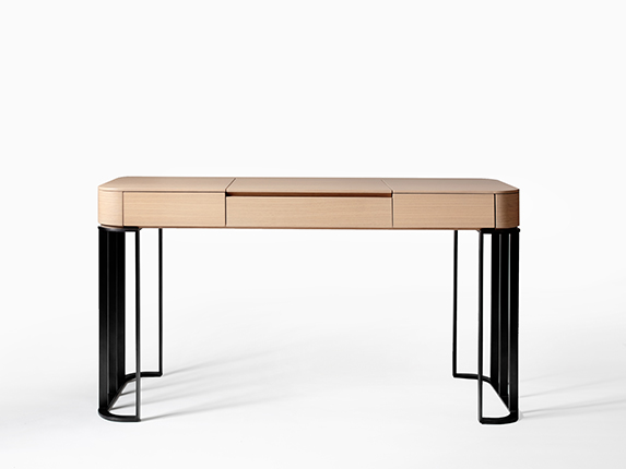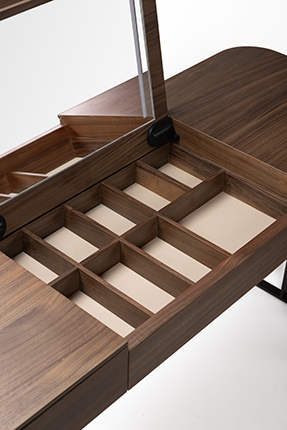 The lift-up vanity mirror features built-in sensor-activated lighting. When the desktop is closed, the surface readily serves as a functional writing area.