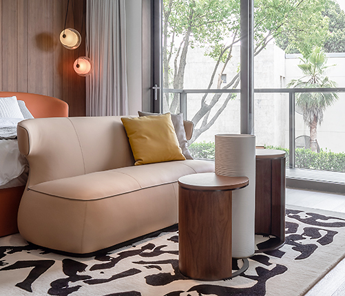 The varied heights of its form break through spatial boundaries, creating an open sense of dimension.