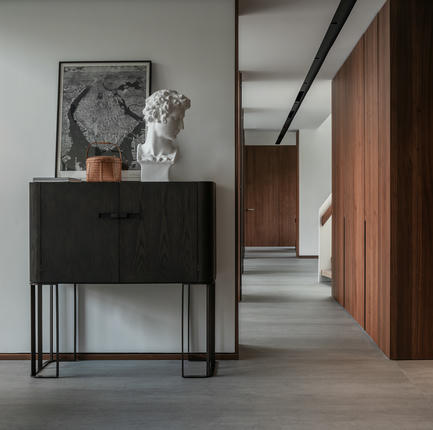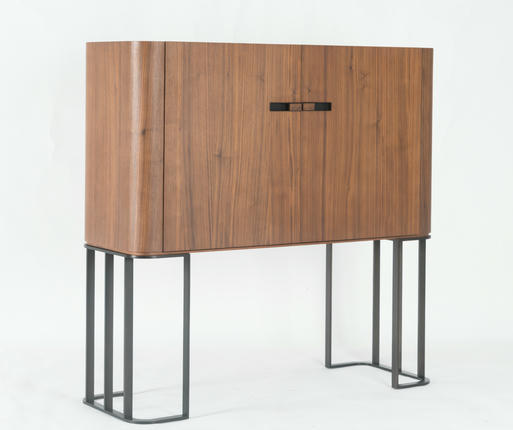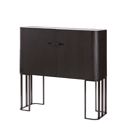 The Cantonal Side Cabinet stands as a masterful blend of solid wood, metal, and stone.