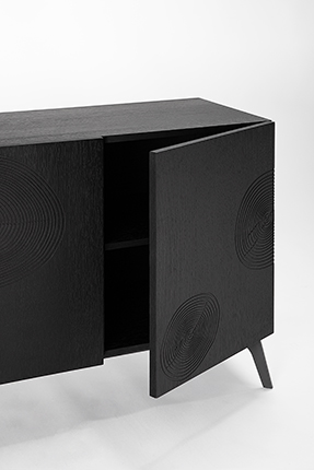 The cabinet door is engraved with the brand's signature growth ring logo, contributing to a look that is simple, unique, and nobly proportioned.