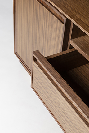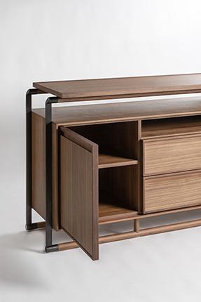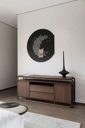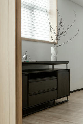 Its form is rectilinear and warm, exuding a classical yet lively spirit.