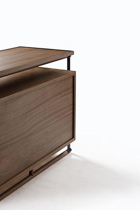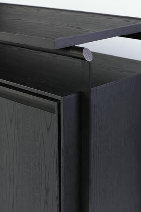 The countertop unfolds smoothly on a pivot, much like an unrolling scroll.