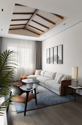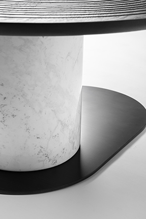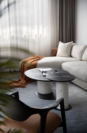 Wood, marble, and metal are innovatively combined in a segmented design, breaking conventional boundaries.