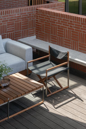 Crafted from premium teak wood, specially treated for weather resistance, with metal components finished in anti-corrosion coating.