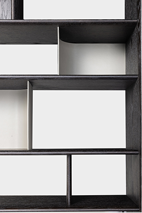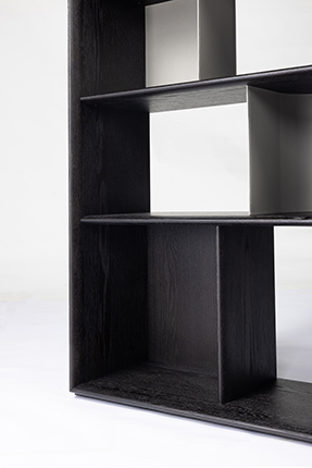 This piece features an open, irregular grid design. Its shelves of varying sizes intersect at different levels, creating a look that appears spontaneous yet is underpinned by a hidden order.