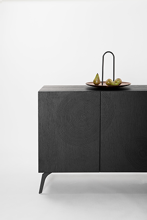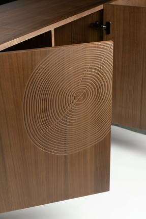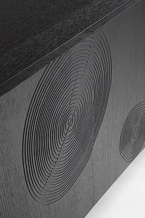柜面雕刻有品牌代表性的年轮logo,造型简洁独特