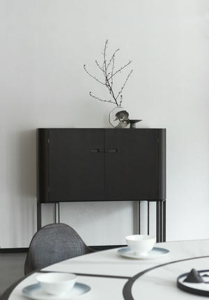 弦音边柜是实木、金属、石材巧妙结合的又一典范,
