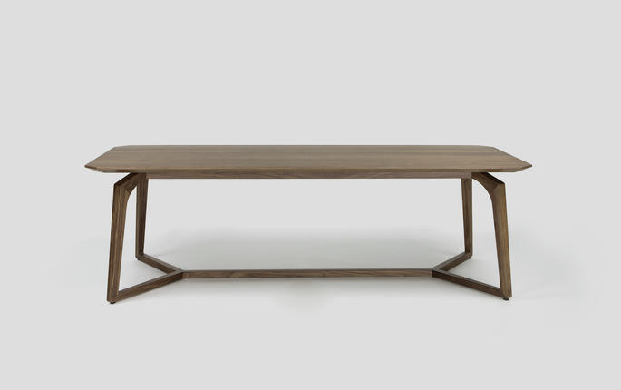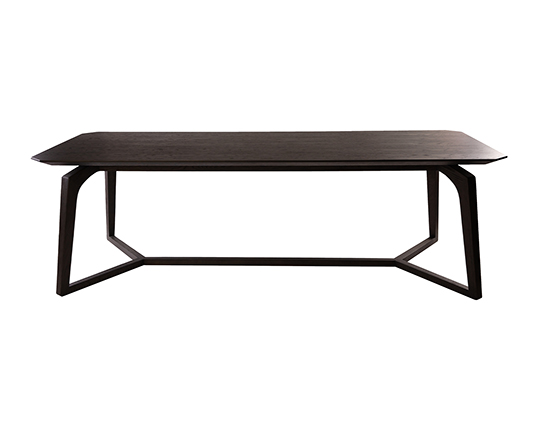 桌面与桌角均采用切角处理,使厚重木桌面传达出轻盈的视觉效果。
