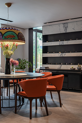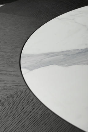 外形简洁,木台面配合意大利进口岩板转盘。