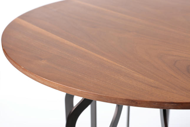 琴弦支脚由实木钢板切割并焊接而成,兼顾了视觉效果和稳定性;桌面木质纹理清晰流畅,边角精细打磨至光滑又不失棱角。