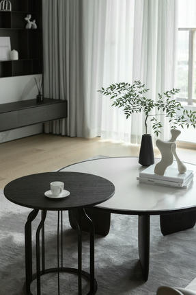 设计延续“弦音”系列概念,拥有琴弦一般的金属支脚,搭配实木桌面,造型优雅灵动。