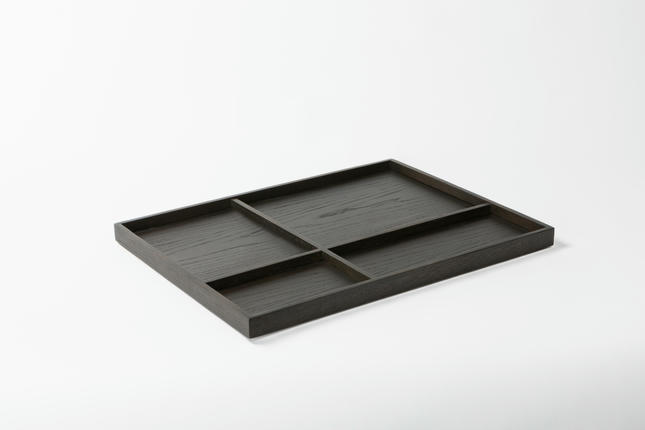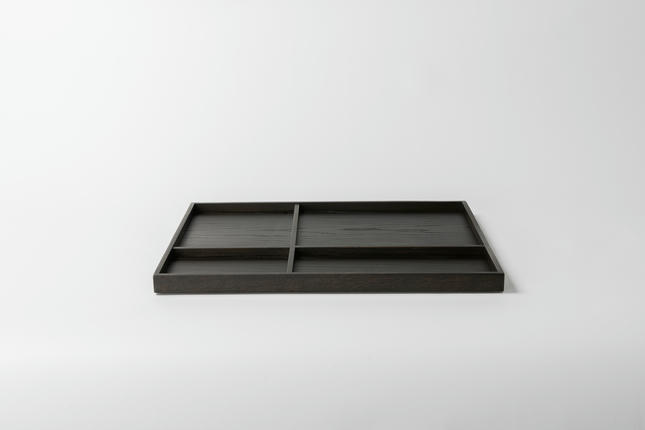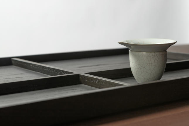 托盘内部功能分区做十字切割处理,易于盛放茶点器具。