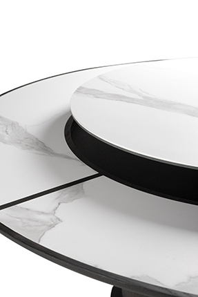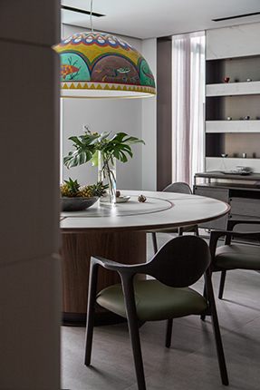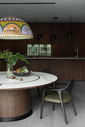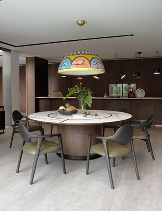 圆弧造型落落大方,精选木料、岩板、古铜拉丝不锈钢,尽显质感,