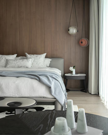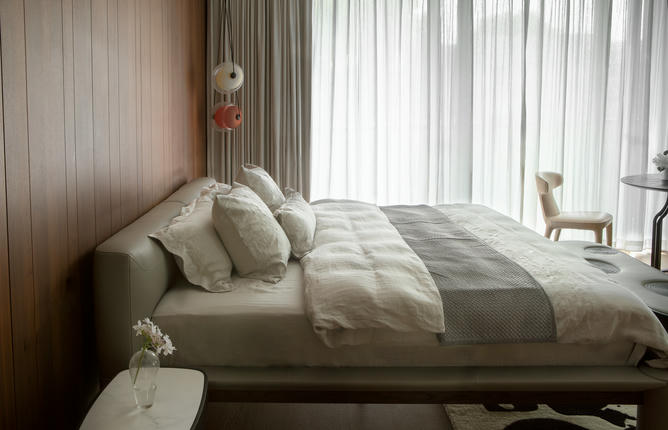 以梧桐树为灵感,将枝干的舒展与枝叶的繁茂凝练于床榻之间,