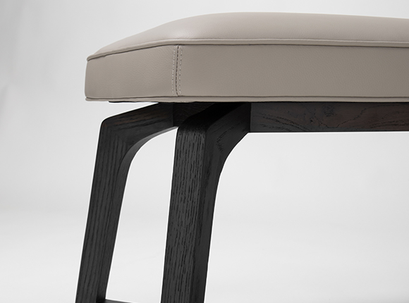 The cushioning, filled with high-resilience foam and wrapped in leather, enhances sitting comfort.