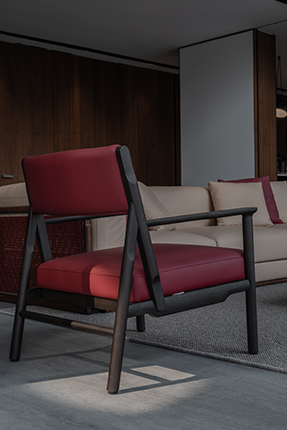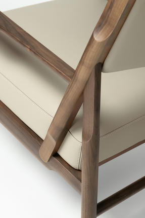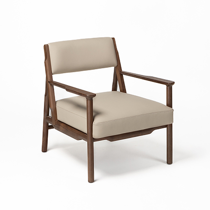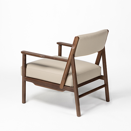 Crafted from top-grain leather and solid North American wood, this piece features a gently reclined backrest for optimal comfort.