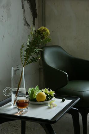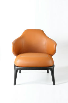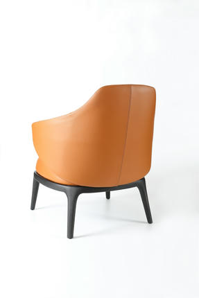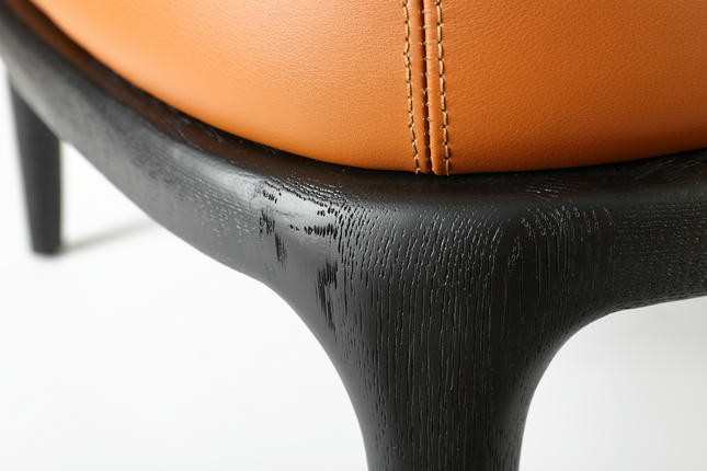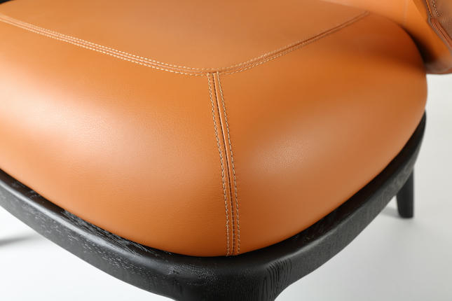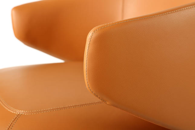 Inspired by racing seats, this chair features a tall, curved backrest that provides optimal lumbar support.