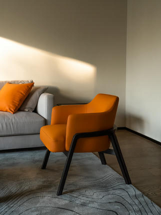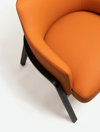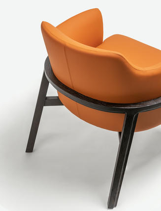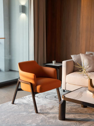 The design distills the essence of Ming and Qing dynasty armchairs, featuring a semi-enveloping backrest that echoes classical forms.