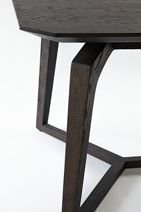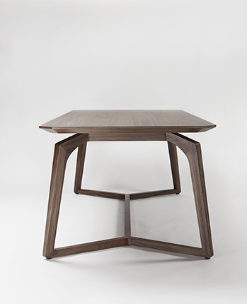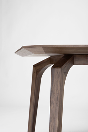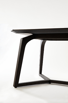 The desktop and corners feature precisely chamfered edges, lending a visually lightweight impression to the substantial wood surface.