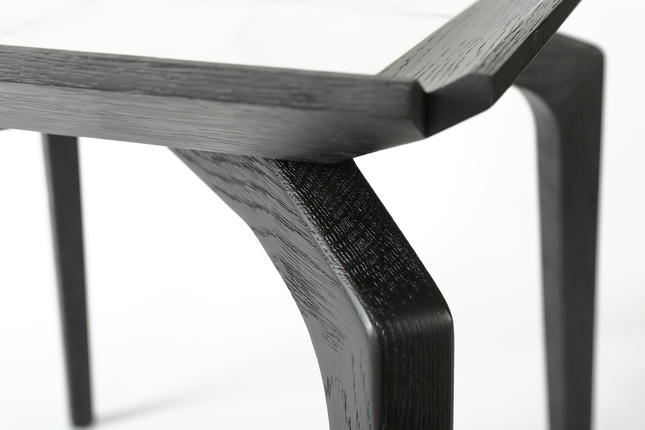 The central tray, crafted from Italian sintered stone, showcases natural textures alongside the solid wood, creating a timeless and stylish combination.