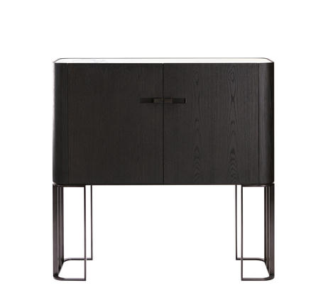 The Cantonal Side Cabinet stands as a masterful blend of solid wood, metal, and stone.