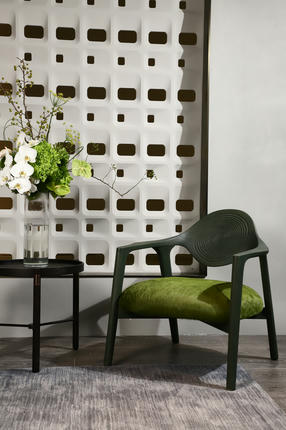 Inspired by the growth rings of trees, the design extends organically from the circular backrest, embodying a natural and fluid aesthetic.