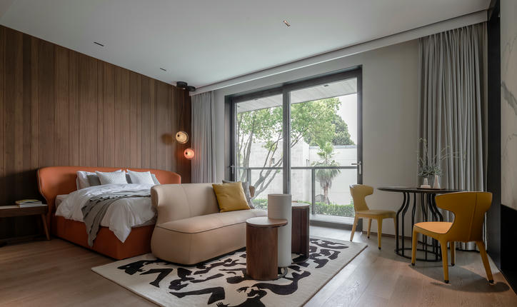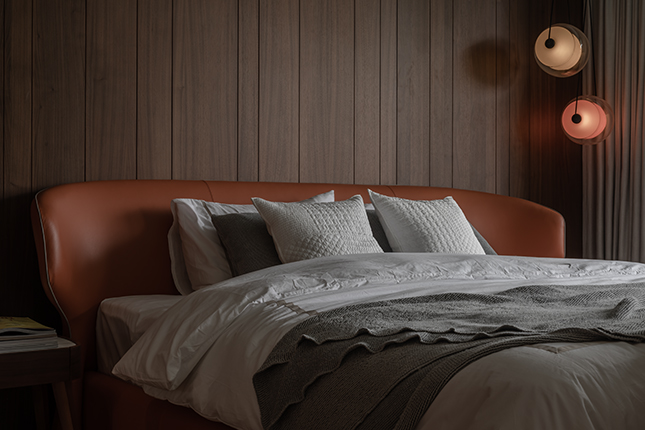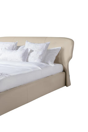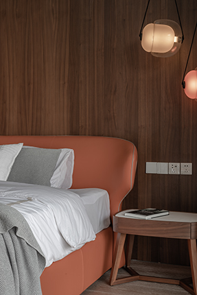 床头靠背采用环抱型设计,稍稍向外延伸并弯曲的造型,如同温暖怀抱将人包裹,
