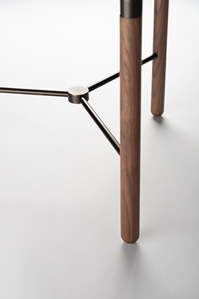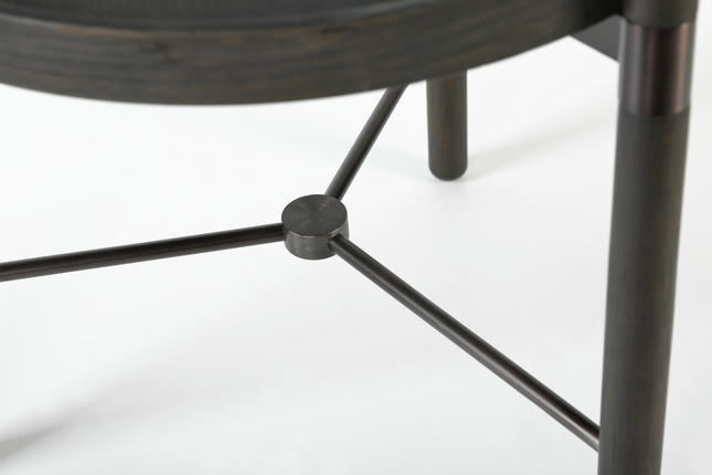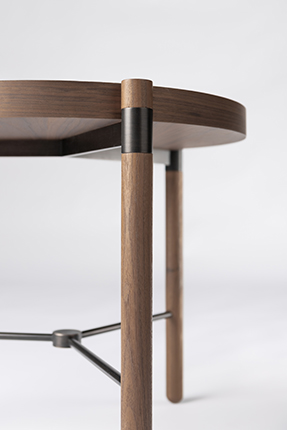 从桌面到支脚,“圆”作为关键元素贯穿于设计之中,木质托盘式桌面的厚薄与支脚的粗细构成合宜的比例。