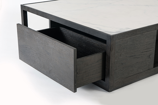 镂空造型体现几何体块穿插美感,使得造型厚重的梧桐茶几多了几分空灵之美。
