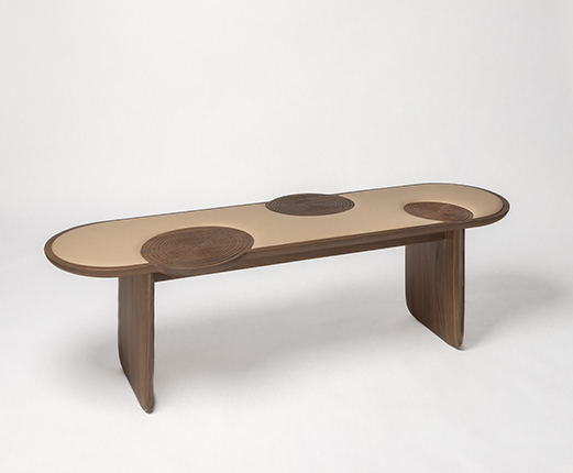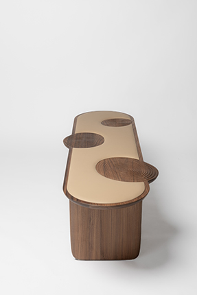 流线型设计,凳面凳腿厚薄穿插,富于变化。