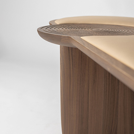实木、年轮雕刻、牛皮软包,