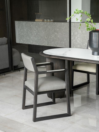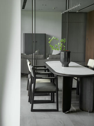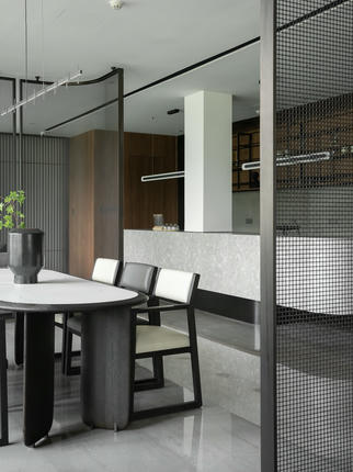 竖直方正的线条犹如框景一般,不同角度能呈现出不同画面。