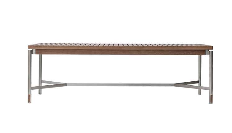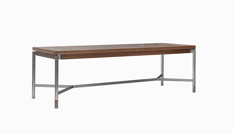 温润柚木与冷峻金属的碰撞,在横档处形成精妙的材质过渡。